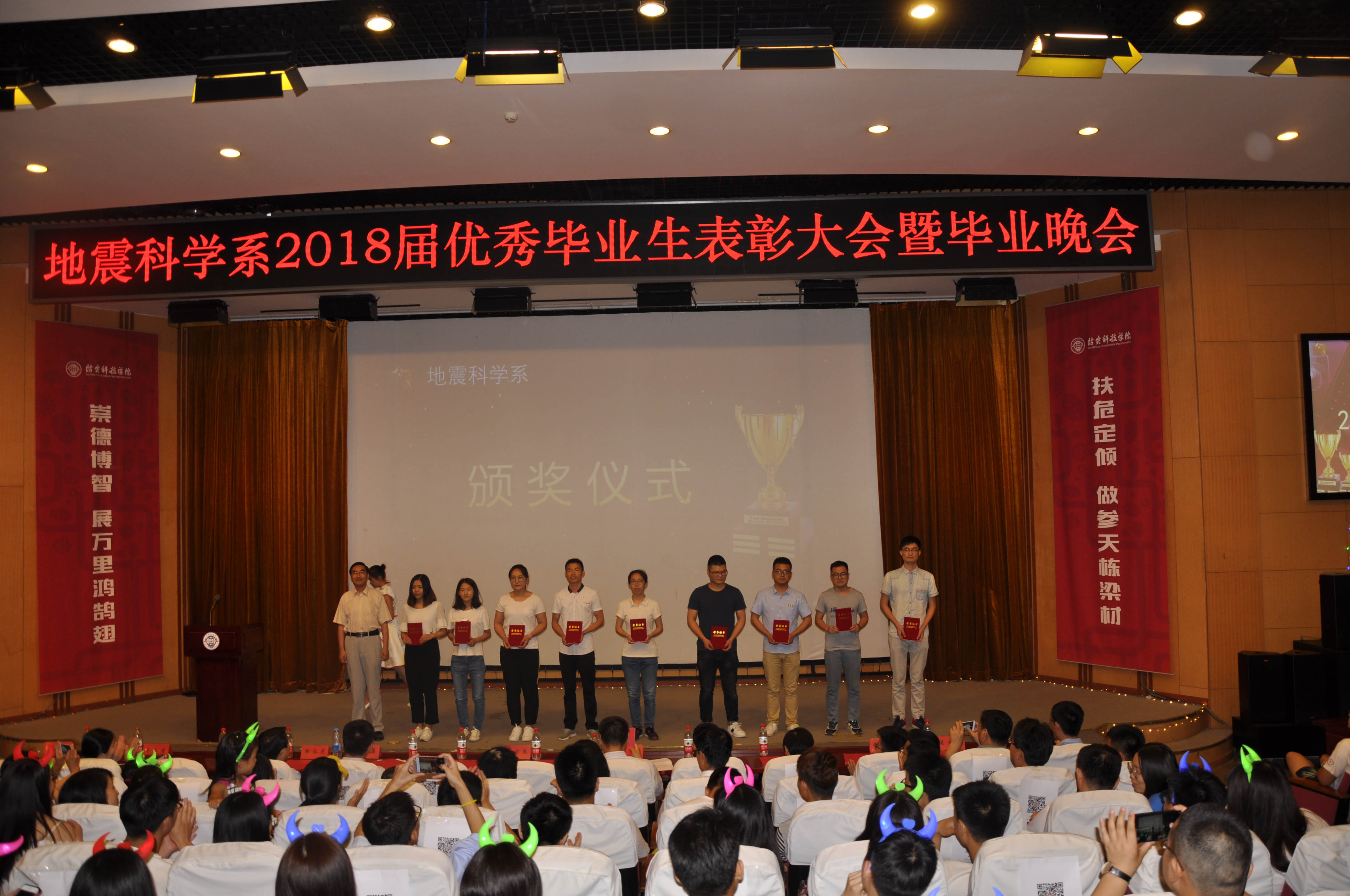 6月7日晚,地震科学系在南校图书馆报告厅隆重举行2018届优秀毕业生表彰大会暨,公司员工工作处处长侯逾昆、系主任沈军、系党总支书记达勇、系副主任谷洪彪以及各教研室主任、全体辅导员参加了表彰大会,大会由系团总支书记唐圣华主持。