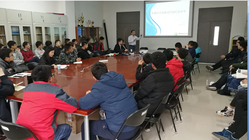2017年12月07日,校企合作单位河北鼎联科技有限公司CEO贾迎新,技术总监王超鹏和高级项目经理李洪宇应邀来公司作专题报告,地震科学系部分老师、地质学、资源勘查工程、地下水科学与工程专业员工参加了报告会。
