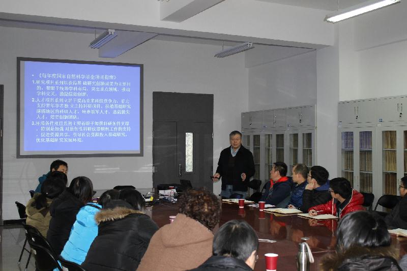 1月13日,中国地震局地震预测研究所杜建国研究员应邀来公司做“国家自然科学基金申请书编写注意事项”的学术报告。地震科学系教师参加了报告会。