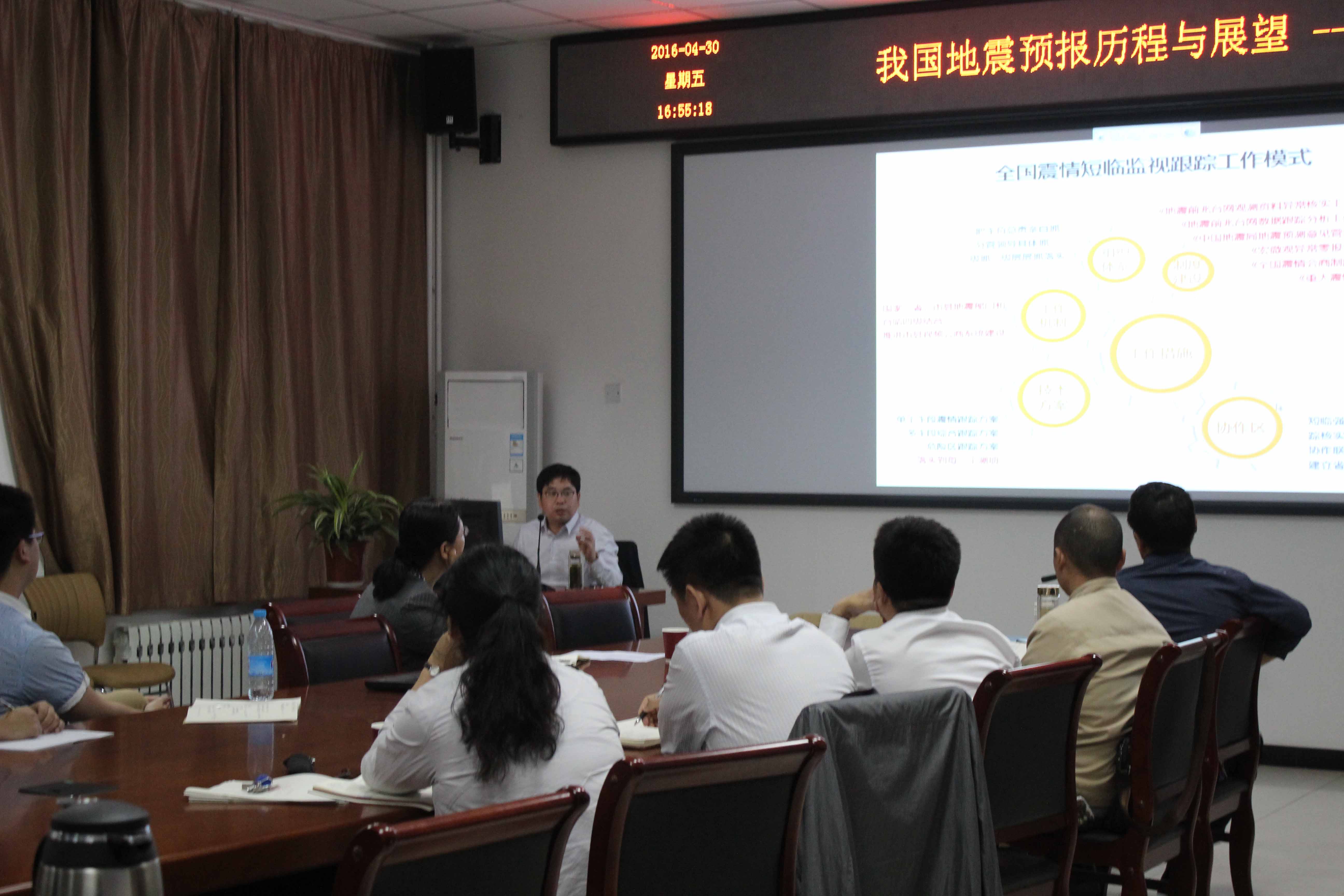 2016年04月29日下午,中国地震局监测预报司预报管理处处长马宏生副研究员应邀来公司做学术报告,报告由地震科学系李莹甄副研究员主持,地震科学系系主任沈军研究员、书记达勇、学科带头人万永革研究员等教师参加了学术报告,以及部分地球物理专业员工参加了报告会。