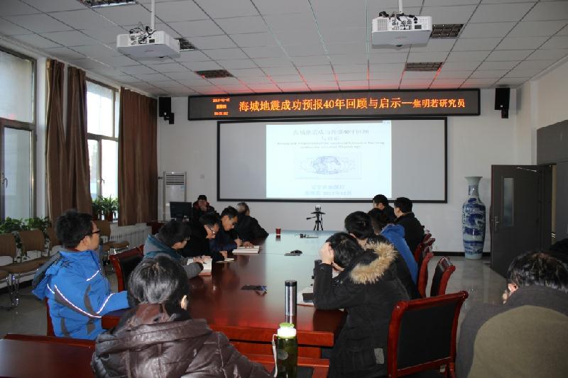 1月7日,辽宁省地震局预报中心主任焦明若研究员应邀来公司作学术报告,万永革研究员主持报告会,地震科学系部分教师和研究生参加了报告会。