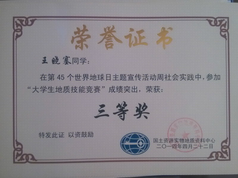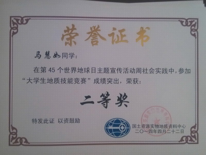 4月20日,由国土资源实物地质资料中心举办、15vip太阳成集团古天乐和华北科技公司协办的的首届实物地质技能竞赛在地质实物资料中心举行。竞赛分为矿物手标本鉴定、岩石手标本鉴定、岩石薄片镜下鉴定、大型矿石标本鉴定、古生物标本鉴定五部分。此次参赛的公司有中国地质大学(北京)、北京大学、15vip太阳成集团古天乐、华北科技公司。公司2011级资源勘查工程专业和地质学专业18名同学参加了该比赛,经过一个星期的激烈角逐,公司1150133班马慧如同学获得二等奖、1150131班王晓赛同学获得三等奖、另有朱洪建等10人获得优秀奖。