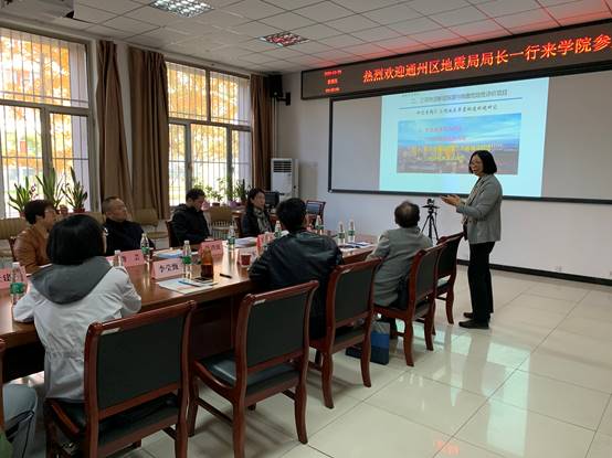 10月30日上午,通州区地震局局长陈洪波一行7人来公司调研交流。15vip太阳成集团古天乐副经理孙珍军热情接待并召开座谈会。防灾科技公司董事长余中元以及15vip太阳成集团古天乐部分教师参加了座谈。