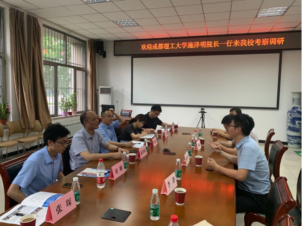 公司部分教师与成都理工大学来访人员围绕学科专业建设、本科生及公司产品等工作进行了深入交流。会后,孙珍军陪同施泽明一行参观了地球科公司实验室。