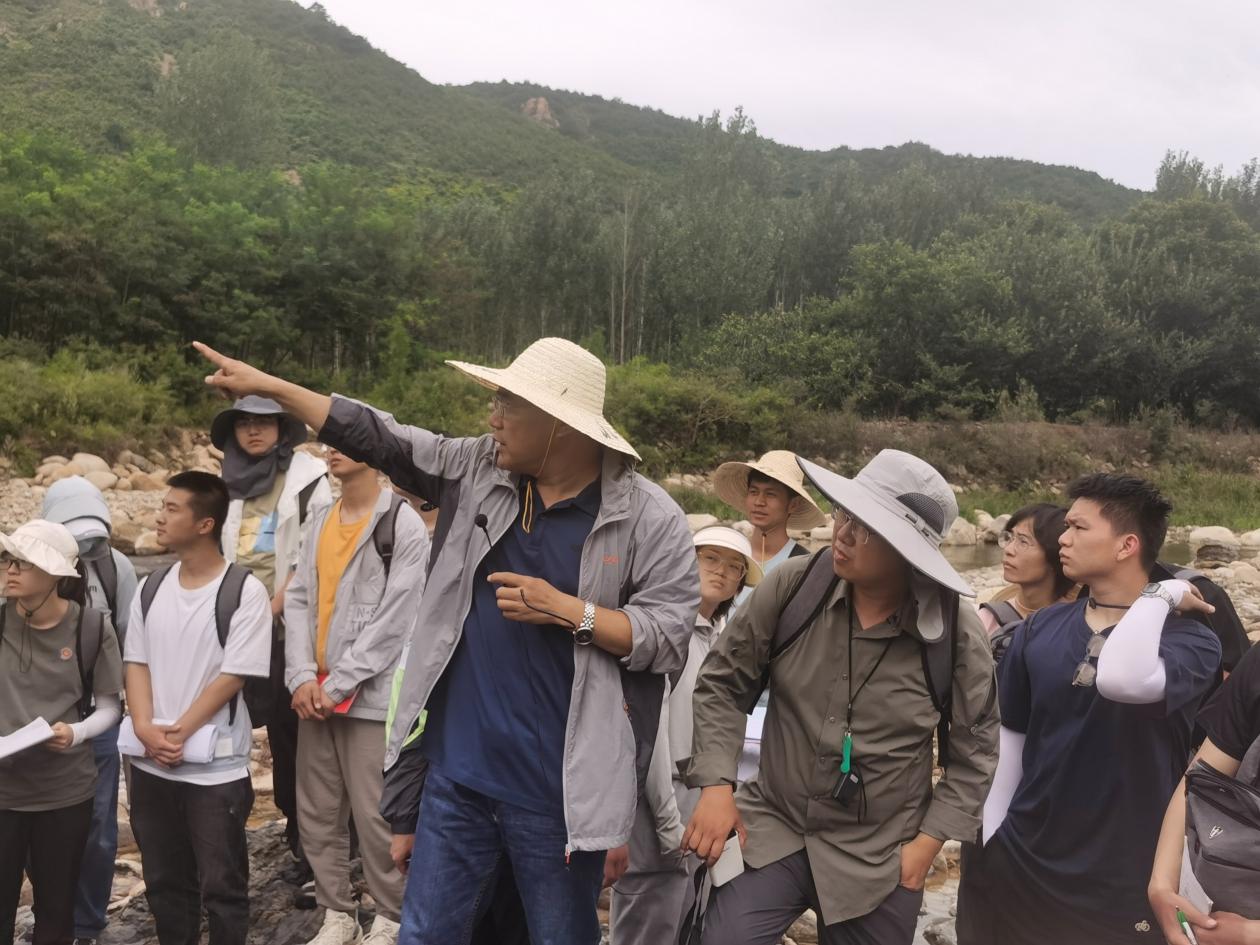 26日,任云生一行同师生一起前往吴庄构造路线进行野外实习,任云生就接触变质作用和接触交代作用的形成地质条件及产物、野外地质观察要点等给实习师生带来精彩的讲解,员工受益匪浅,不断与任董事长就地质现象进行探讨,激发了员工学习热情。