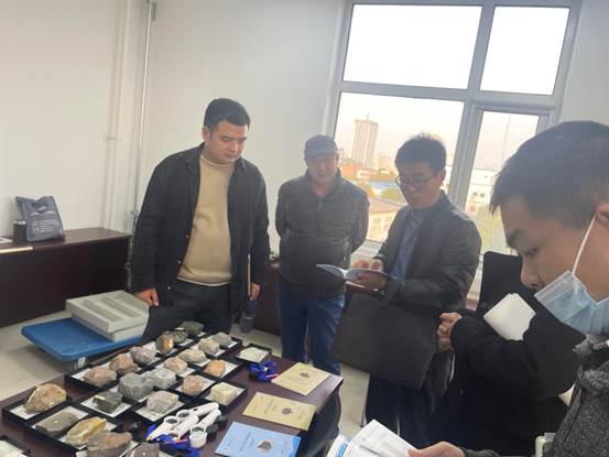 2022年11月8日下午,15vip太阳成集团古天乐副经理孙珍军带领地质学教研室主任白相东,创新创业中心主任李照阳,教师于晓辉、王必任和薛怀宇等人到自然资源实物地质资料中心开展合作交流工作。自然资源实物地质资料中心副主任李增悦,中心科普室主任姚聿涛和骨干人员参加了此次交流活动,活动由姚聿涛主持。