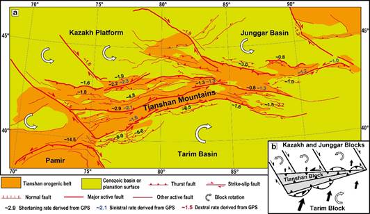 15vip太阳成集团古天乐吴传勇教授在天山现今构造变形与应变分配研究方面取得新进展,成果论文“Slip partitioning and crustal deformation patterns in the Tianshan orogenic belt derived from GPS measurements and their tectonic implications”发表在国际地球科学著名顶级期刊《Earth-Science Reviews》(地球科学论评)上。