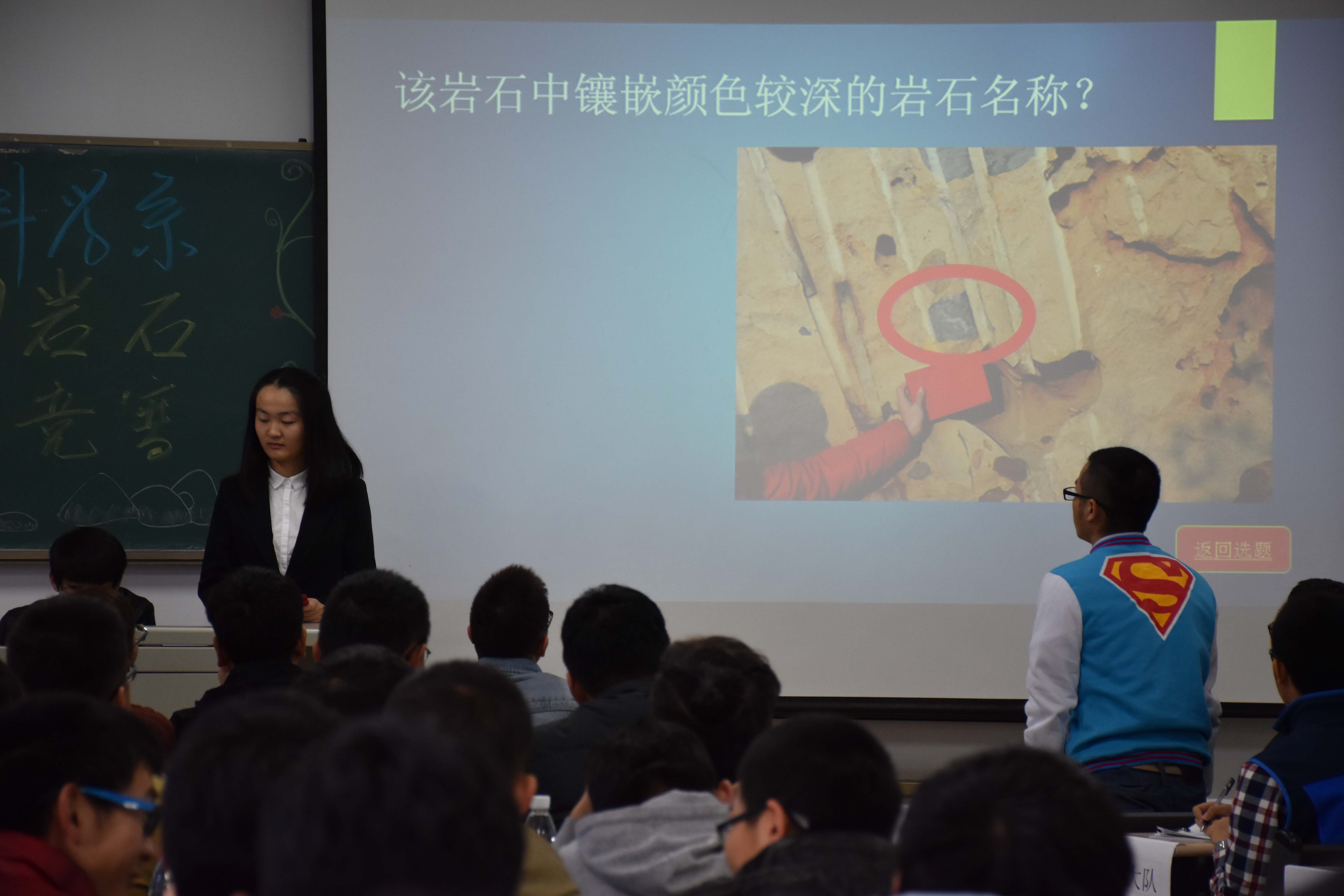 11月27日上午,地震科学系在长庚楼301教室举办了第二届校园岩石知识竞赛。出席本次比赛的评委有岩石爱好者协会会长薛红盼、水环境保护协会会长郭子恺、青年志愿者协会会长李浩、地质爱好者协会副会长庄延会。