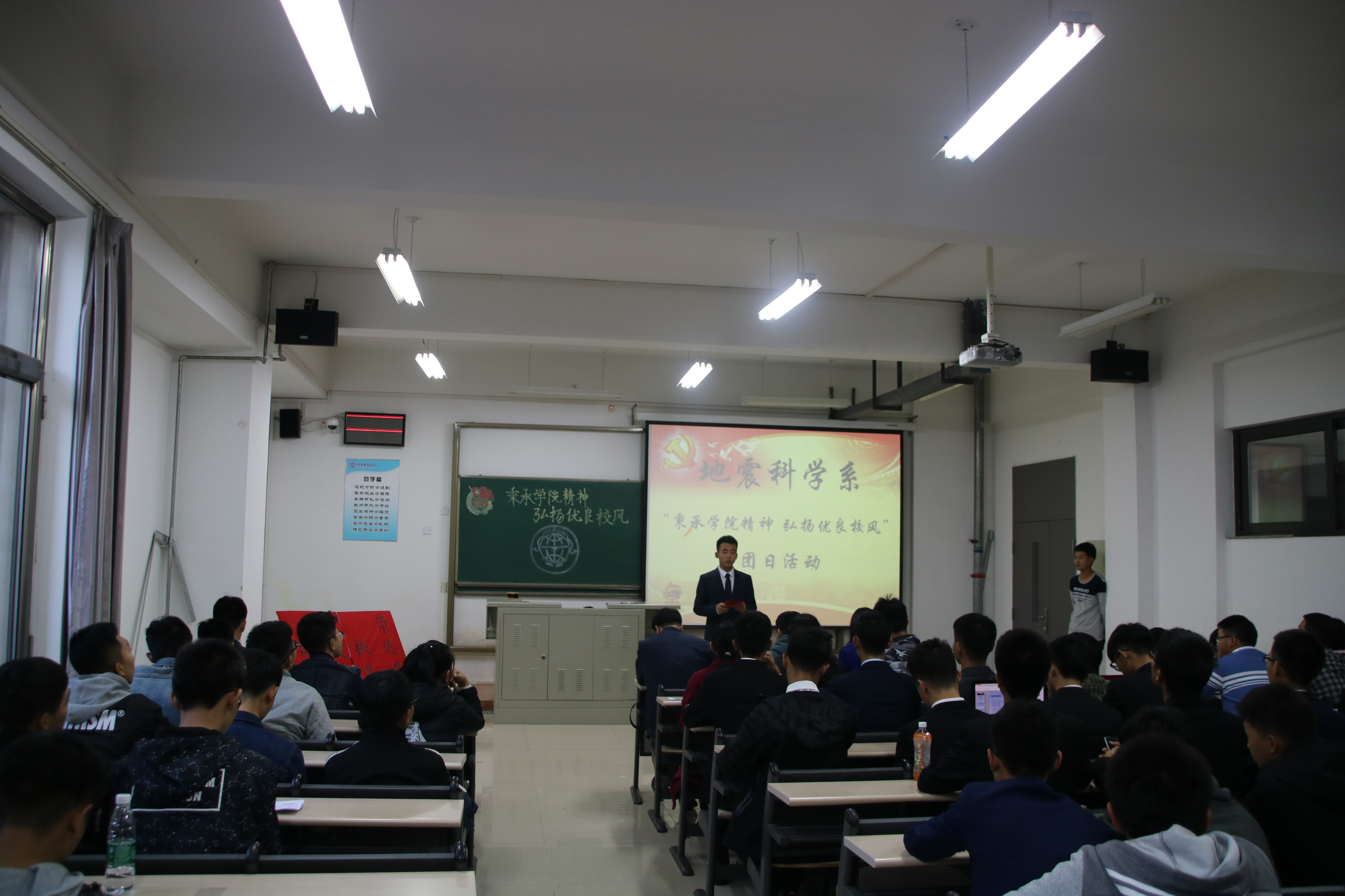 近期,地震科学系结合实际,精心设计,按照了解校风、认同校风、践行校风“三部曲”,组织开展了一系列“弘扬优良校风”特色主题教育活动,将公司“仁爱、严谨、俭朴、担当”的校风精神通过不同形式的载体渗透、烙印到同学们的心中,融入、转化到同学们的自觉践行中。