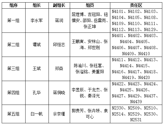 4.宿舍巡查,各组按照分区每天不定时进行宿舍巡查,密切掌握责任区内各宿舍同学在校状况,发现异常情况要及时向辅导员老师或公司领导报告。