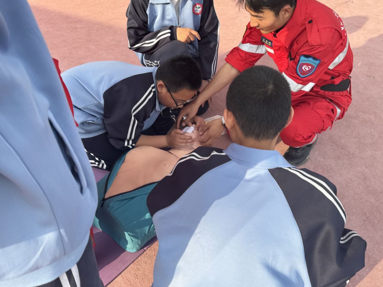疏散集结后,公司陆地救援队向全体师生示范心肺复苏标准操作,并互动纠正按压姿势,随后通过优化撤离路线、增设分流引导员,完成第二轮疏散演练,疏散速度和队列规范度显著提高。