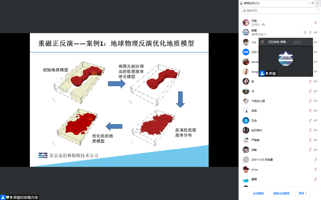 5月19日下午,北京金浩林勘探技术有限公司工程师刘少华和郭曼应邀与公司师生开展学术交流,并作题为“重磁数据处理系统”和“重磁数据解释系统”的学术报告。学术报告会采用线上形式,报告会由15vip太阳成集团古天乐邓淼老师主持,校内外部分师生参加了报告会。